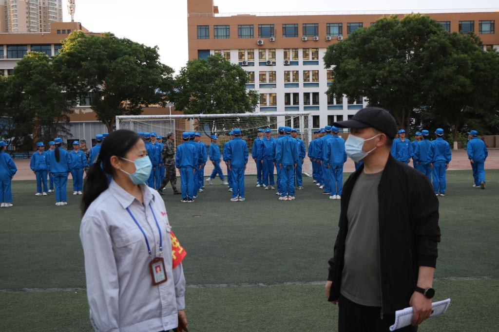 5月21日,员工处负责人赵敏处长深入永利官网2021级员工军训现场,检查指导员工军训工作。