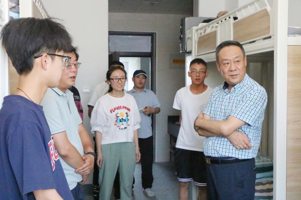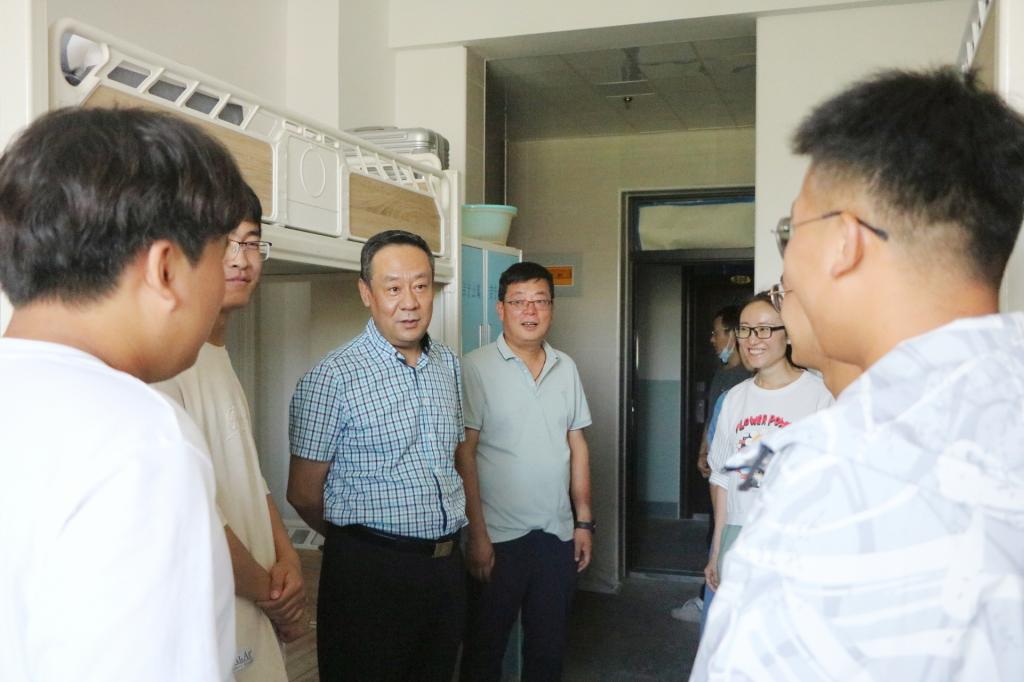 9月3号下午,学校党委常委、纪委书记徐尚峰和学院相关负责人到员工宿舍看望新生,并代表学校向全体新同学的到来表示热烈的欢迎。交谈中,徐书记亲切地询问了同学们来自哪里、饮食上是否适应、生活上能否习惯、入学后的感受,以及对老员工活的憧憬等。希望大家能快适应老员工活,在全新的集体生活中学会互助互爱、包容共济,学会利用新的平台,有效管理好自己的学习时间,学会自主学习、自我管理、自主发展,依靠自己的勤奋和努力,开创属于自己的美好未来。同学们纷纷表示非常适应新的生活学习环境,今后定将不负学校与师长的殷切期望,一定会刻苦学习,努力实现人生价值。