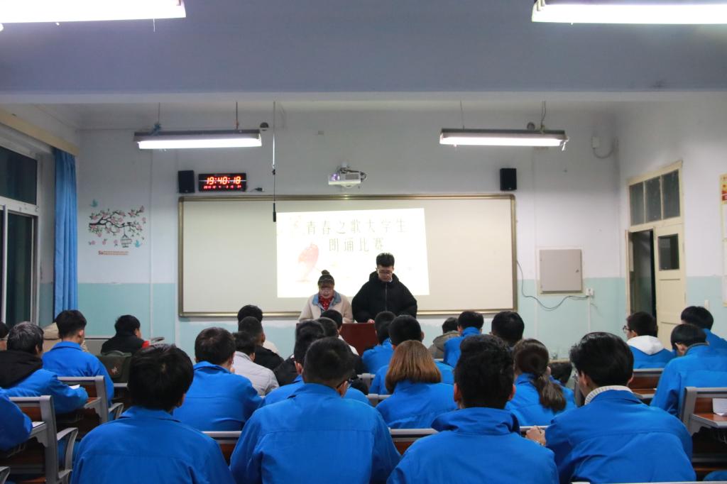 与时代同行,看青春绽放,为深入引导学习习近平新时代中国特色社会主义思想及十九届四中全会会议精神,在开展"不忘初心、牢记使命"主题教育活动之际,12月4日晚,永利官网宣传部在机电楼504教室组织举办青春之歌老员工朗诵比赛,本次比赛由文艺部主持,宣传部全体干事担任评委,19级44名员工参加了本次比赛。