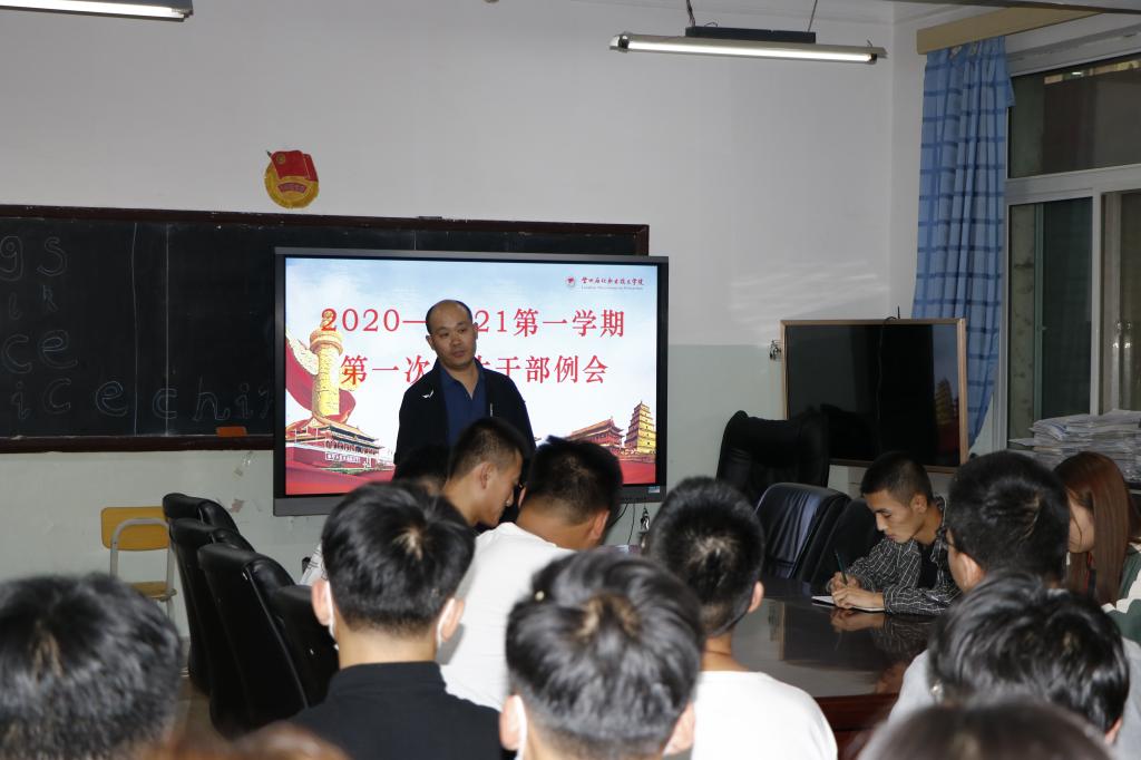 为做好开学后各项员工工作,加强员工干部工作主体责任,提高员工干部自身素质。8月24日晚,永利官网在机电楼展览室召开本学期第一次员工干部例会;会议由辅导员张亚峰主持召开,参加会议的有18、19级全体干部、干事;会议主要围绕两项内容展开:一是开学后各部门主要工作安排,二是干部培训。