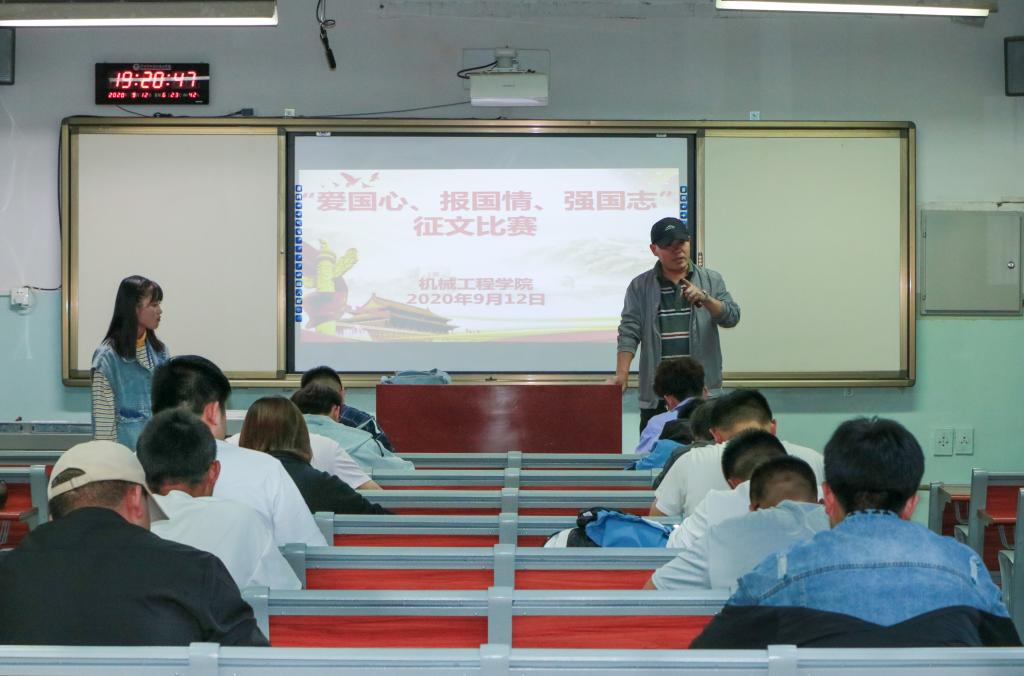 为深入贯彻落实习近平新时代中国特色社会主义思想,特别是习近平总书记关于爱国主义教育、青年成长成才等重要论述,进一步引导广大青年员工涵养家国情怀、坚定民族自信,积极培育社会主义核心价值观,让爱国主义精神在青年员工心中牢牢扎根,9月12日晚,永利官网在机电楼302、304教室组织开展 “爱国心·报国情·强国志”现场征文活动,学院19级员工共70余人参加了此次活动。