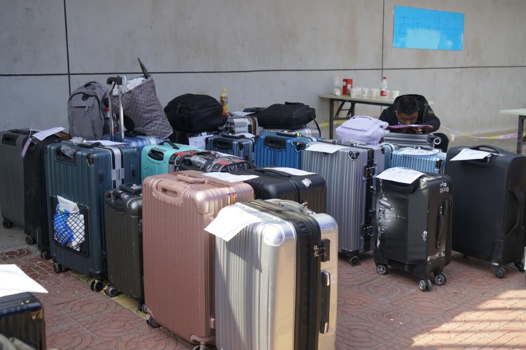 (整齐放置的行李箱)