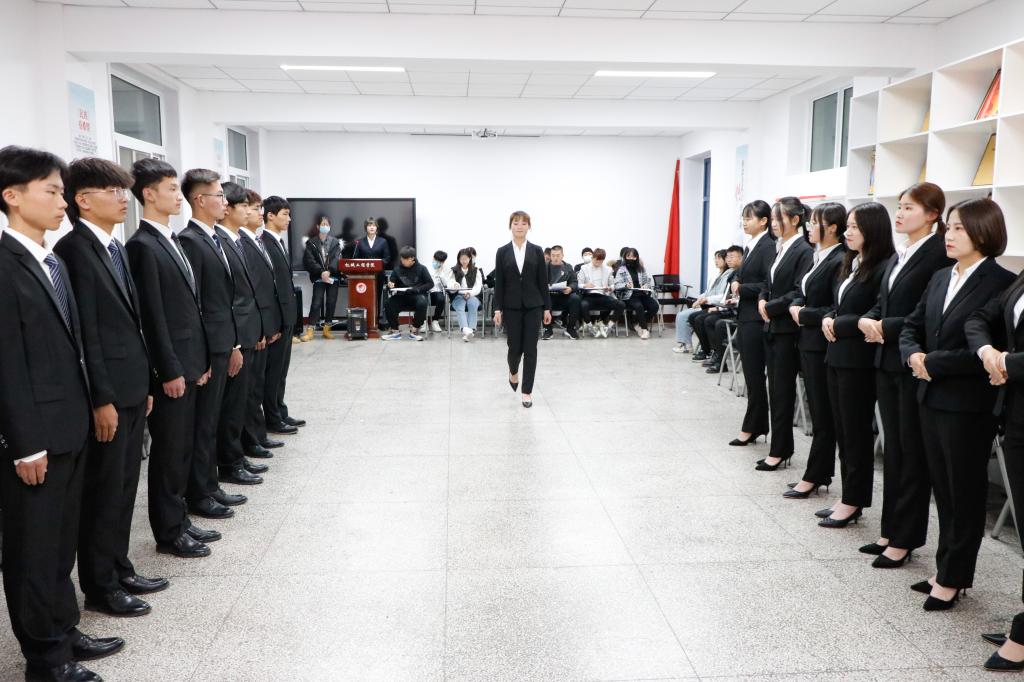 活动伊始,主持人宣读了此次大赛的安排及比赛内容。随后大赛在掌声中正式开始,参赛选手随着音乐依次上场,她们身着统一服装,自然大方得体的仪态,自信的微笑,配上时尚动感的音乐,动作整齐划一,成为了赛场上一道靓丽的风景线,充分展示了参赛选手的职业礼仪形象。接着是男子组选手依次上台,他们步履雄健有力,展现出男儿英武刚健的阳刚之美。