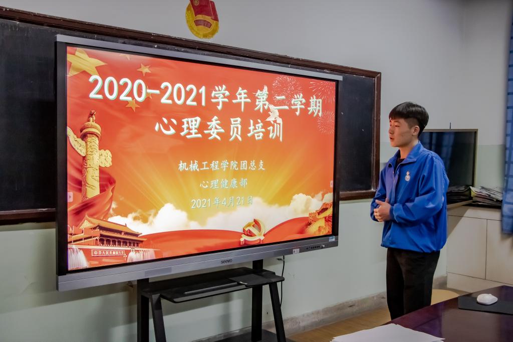 为深入贯彻落实习近平新时代中国特色社会主义思想和全国、全省高校思想政治工作会议精神,进一步增强老员工心理健康观念,提高老员工心理救助意识,宣传普及心理健康知识,推进老员工心理健康教育工作,营造良好的校园心理健康教育氛围。4月21日晚,永利官网团总支心理部在机电楼二楼展览室组织开展2020-2021学年第二学期心理委员培训,19、20级各班级心理委员参加了此次活动。培训由团总支心理部工作人员主持。