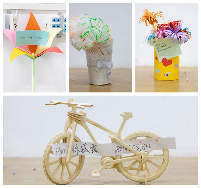 活动开始后,每个宿舍的同学都积极参与,她们利用空闲时间,利用空瓶子、易拉罐、口香糖盒、旧鞋盒等生活中轻易可见的废品,集中智慧,制作出了花瓶、笔筒、风铃、灯笼等实用、美观的作品,一方面解决了废品处理困难的问题,一方面勤俭节约,避免了不必要的浪费。活动最后,经过女工部工作人员层层评选,东区综合楼941宿舍利用废弃筷子做成的自行车摆件获得了一等奖,另有五个宿舍分别获得了二等奖和三等奖。