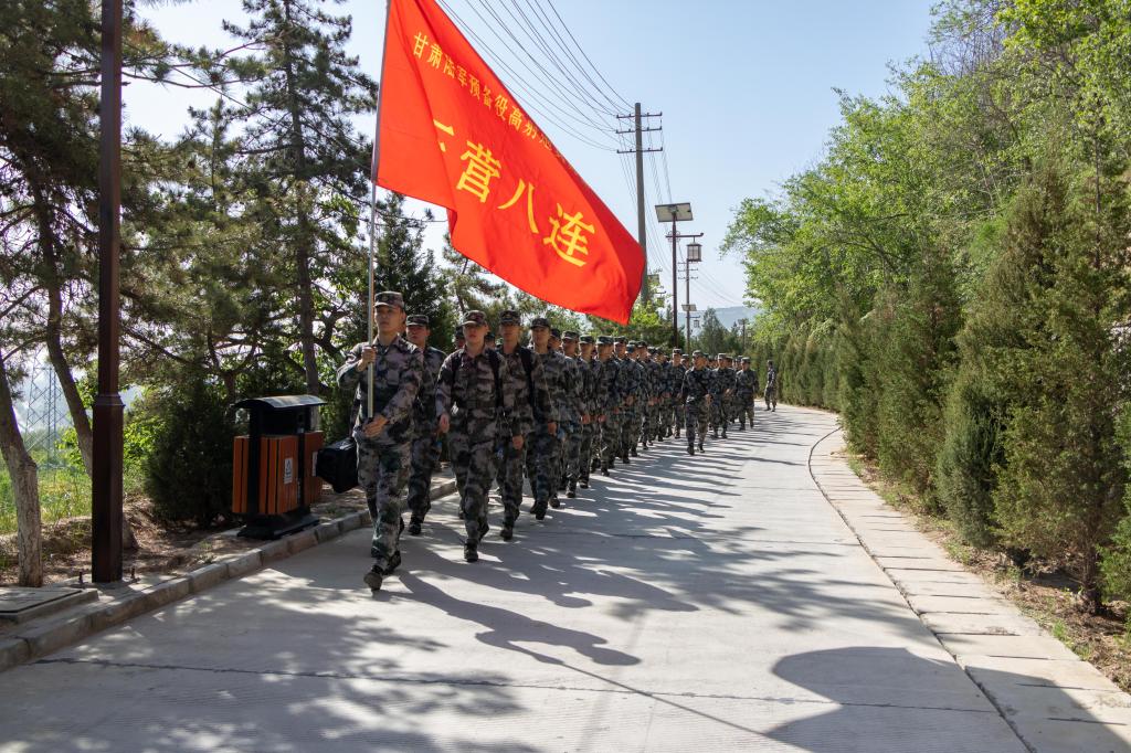 上午7时45分许,预备役负责人张鑫鑫中尉吹响集合哨,全体士兵迅速集结,整装待发。在张鑫鑫简短有力的动员后,士兵们精神振奋、士气高昂地向指定地域挺进。一路上战士们扛着连旗,精神抖擞,步伐整齐,虽然烈日炎炎,却摧垮不了队员们行军的意志,他们的身姿依然挺拔,步伐依然铿锵,队伍依然整齐,听到号令后立即执行。举起代表荣誉的红旗,士兵们脚步紧凑,队伍严整。一路来,士兵们紧跟旗帜引领,翻山越岭,披荆斩棘,没有一名官兵叫苦掉队。