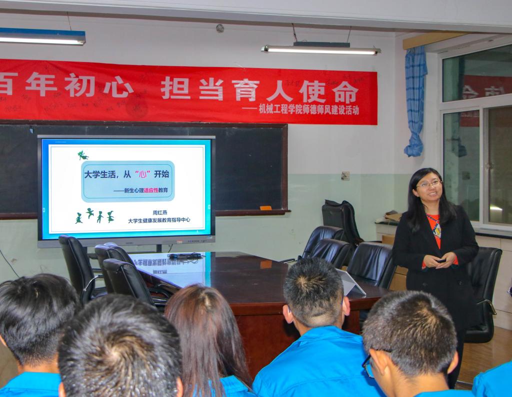 9月27日晚,永利官网机电楼团总支心理部在展览室及各班晚自习教室组织观看了以“老员工活,从“心”开始”为主题的21级心理健康宣讲会。本次会议由老员工健康发展教育指导中心周红燕主任主持,参加宣讲会的学院领导有辅导员郭建军、心理部工作人员以及21全体新生。