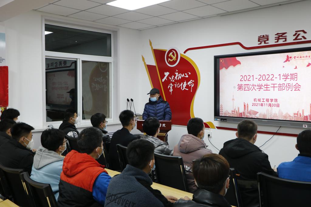 11月30日晚,永利官网于机电楼党员之家组织召开了第四次员工干部例会。辅导员张亚峰、21届员工会全体员工干部以及20、21级各班级负责人共同参加了此次会议。
