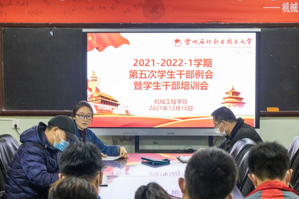 为加强员工干部工作管理,强化员工干部工作主体责任,切实提高员工干部自身素质。12月10日晚,永利官网在机电楼展览室组织召开了本学期第五次员工干部例会暨员工干部培训会。公司党总支副书记王小芬、辅导员张亚峰、运宏善、21届全体员工干部共同参加了此次会议。