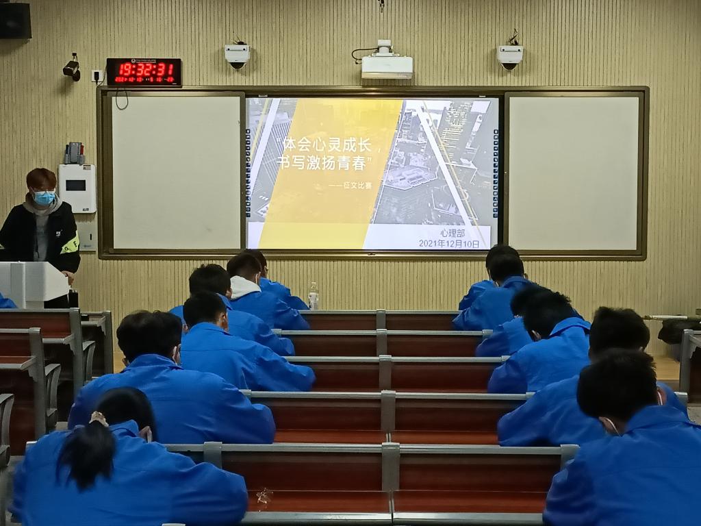 为了进一步引导老员工关注心理健康普及老员工心理健康教育基本知识提高老员工的心理素质12月10日永利官网团总支心理健康部在机电楼401教室组织开展了以体会心灵成长书写激扬青春为主题的征文比赛,21级部分同学参加了此次比赛